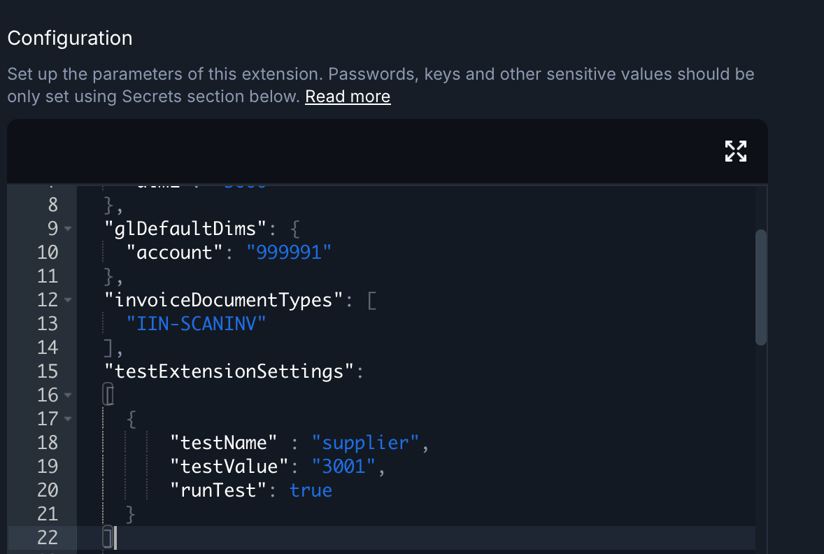 For å gjøre dette må du legge til testinnstillinger i utvidelsesinnstillingene JSON.