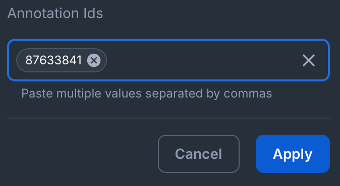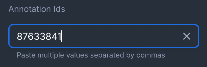3. Legg til annotasjons-ID-en i boksen, men vær oppmerksom på at den ikke vil «ta», du må legge til kommaet etter ID-en, selv om det bare er én
