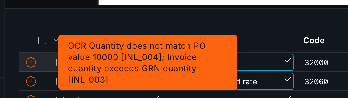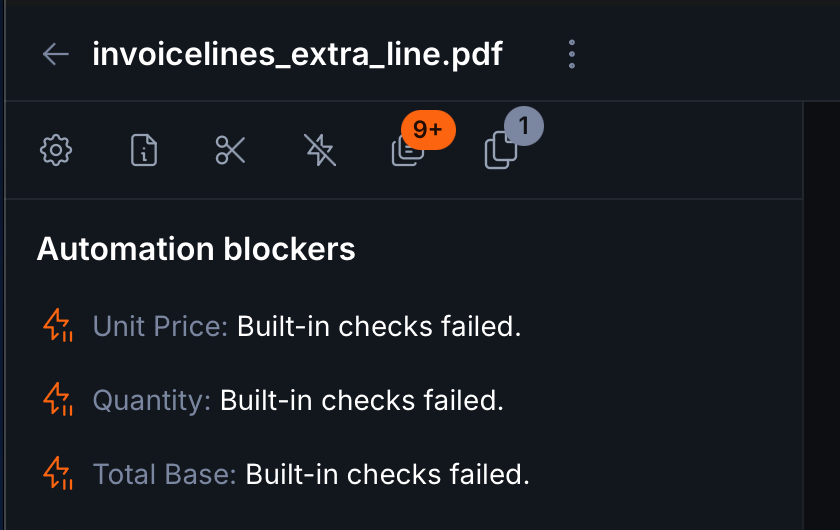 I dette eksemplet er EX_001 en generell feil som forteller oss at det er en eksport som mislykkes. Den løselige feilen er IF_009, og løsningen kan være å redigere fakturanummeret inline, fjerne en feilaktig oppgitt faktura fra ERP eller be leverandøren om å utstede en ny faktura med et nytt fakturanummer dersom dette er en feil fra deres side.