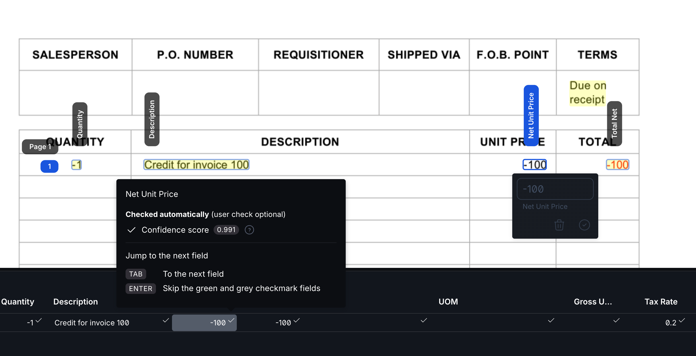 - Data hentet av Rossum vil lede deg til dataene når du klikker på dem