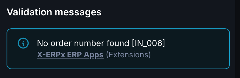 I detta exempel är EX_001 ett allmänt fel som talar om för oss att det är en export som misslyckas. Det lösbara felet är IF_009, för vilket lösningen kan vara att redigera fakturanumret inline, ta bort en felaktigt inmatad faktura från ERP eller kanske be leverantören att utfärda en ny faktura med ett nytt fakturanummer om det är ett misstag från deras sida.